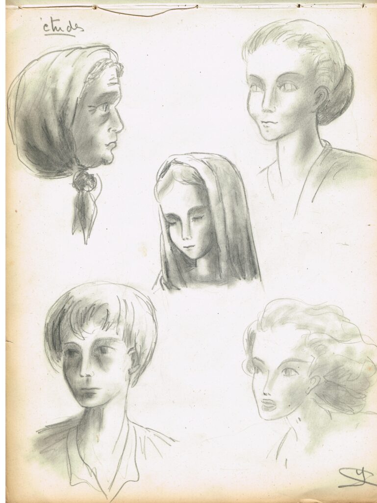 De 1949 à 1951, Manuelle Roche, qui portait à l’époque ses nom et prénom de jeune fille, a étudié aux beaux arts de Toulouse. Voici quelques exemples de ses réalisations de l’époque, diversement signées.